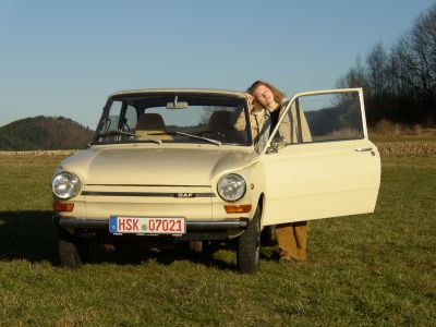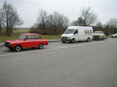 Gefahren wurde der Wagen zumeist von der Gattin, die ihn liebevoll Floh nannte, und ihn immer mit Freude bewegt hat. So hatte sie natürlich auch einiges zu erzählen von dem Wägelchen - so hatte u.a. doch tatsächlich mal jemand versuchen wollen den mitten auf einer Kreuzung stehen gebliebenen Wagen wieder an zu schieben ! Allmählich wurde es dann aber auch Zeit für uns auf zu brechen, schließlich lag noch eine gehörige Stecke vor uns. Was mich allerdings nicht davon abhielt mich noch mit einem Bekanntem auf einem Autobahnparkplatz zu treffen um diesem ein Teil welches er für seinen Volvo 66 brauchte zu überreichen.