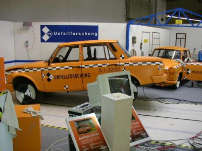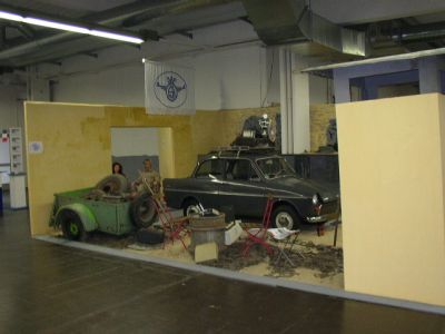 Den zweiten Platz belegte die Installation von Wartburg/Trabi Fans, sie stellten eine Crashtest-Szene dar. Die Zerknautschungen am Wartburg 353 hielten sich aber in Grenzen. Nach meiner Erfahrung wäre da mit mehr Schwung sicher mehr zu erreichen gewesen ... ;o) ... Leider hat dieser Stand die Idee von Markus und mir so etwas darzustellen vorweggenommen.