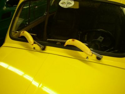 Die Funktion dieser mittels Bananen optimierter Scheibenwischeranlage eines Fiat 500 ist mir allerdings bis Heute ungewiss ....