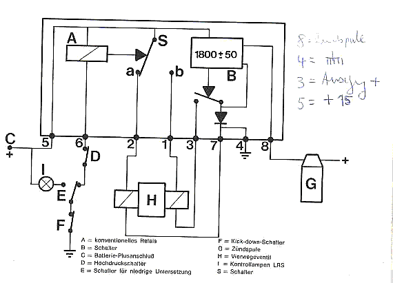 Elektrik von Vierwegeventil und Vakuum prüfen. Wenn man im stand bei N gas gibt, hört man bei 1800 umin das Vierwegeventil klacken, wenn es schaltet. Als erstes prüfen, wenn es nicht schaltet, ob plus von Tachorelais und Masse vom Gaszug da sind. Wenn die Masse fehlt, Bergbremse, Bremsschalter am Hauptbremszylinder und Gaszug überprüfen. Die Masse geht vom Gaszug über Bergbremsschalter und Hauptbremszylinder ans Vierwegeventil. Auch auf die Sicherungen im Sicherungskasten achten. Die Fahnen der Sicherungen brechen gerne und haben dann nur zeitweise Kontakt. Wenn die elektrische Seite in Ordnung ist, Fahr-und Bremskammeranschlüsse an Vierwegeventil einzeln mit Vakuumpumpe aussaugen. Wenn kein Vakuum gehalten wird , Deckel hinten unter der CVT abmachen und die Schläuche links und rechts abziehen und einzeln aussaugen.